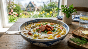 Erwtensoep is voor mij zoān gerecht dat altijd warmte brengt, zeker in het voorjaar als het nog fris kan zijn buiten. Ik herinner me dat mijn oma het vaak maakte met weinig poespas, maar altijd met veel smaak. Dit recept met maar drie ingrediĆ«nten is mijn snelle variant, en geloof me, het hele gezin smult ervan!