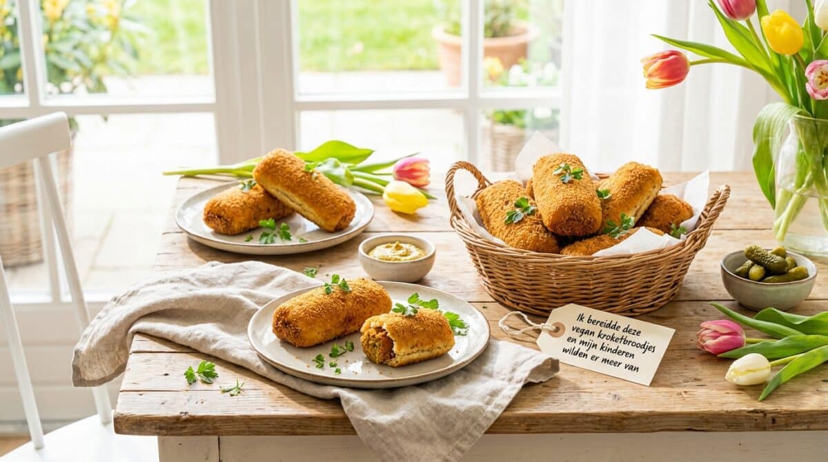 Kroketten waren vroeger voor mij vooral een snack van vroeger, maar sinds ik veganistisch kook, miste ik ze toch wel. Toen ik deze vegan kroketbroodjes maakte voor mijn kinderen, wilde niemand meer stoppen met eten! Het is zo’n fijn gevoel om iets lekkers te maken waar ze echt blij van worden.