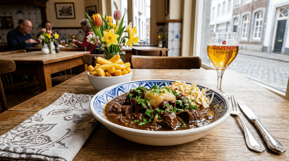 Zoervleisj brengt voor mij de Limburgse sfeer op tafel. Het doet me denken aan lange lenteweekenden bij mijn oma, waar de geur van azijn en stoofvlees in de keuken hing. Dit gerecht combineert zacht vlees met een rijke, licht zure smaak, precies wat ik wil als het weer koeler is maar de lente al begonnen is.