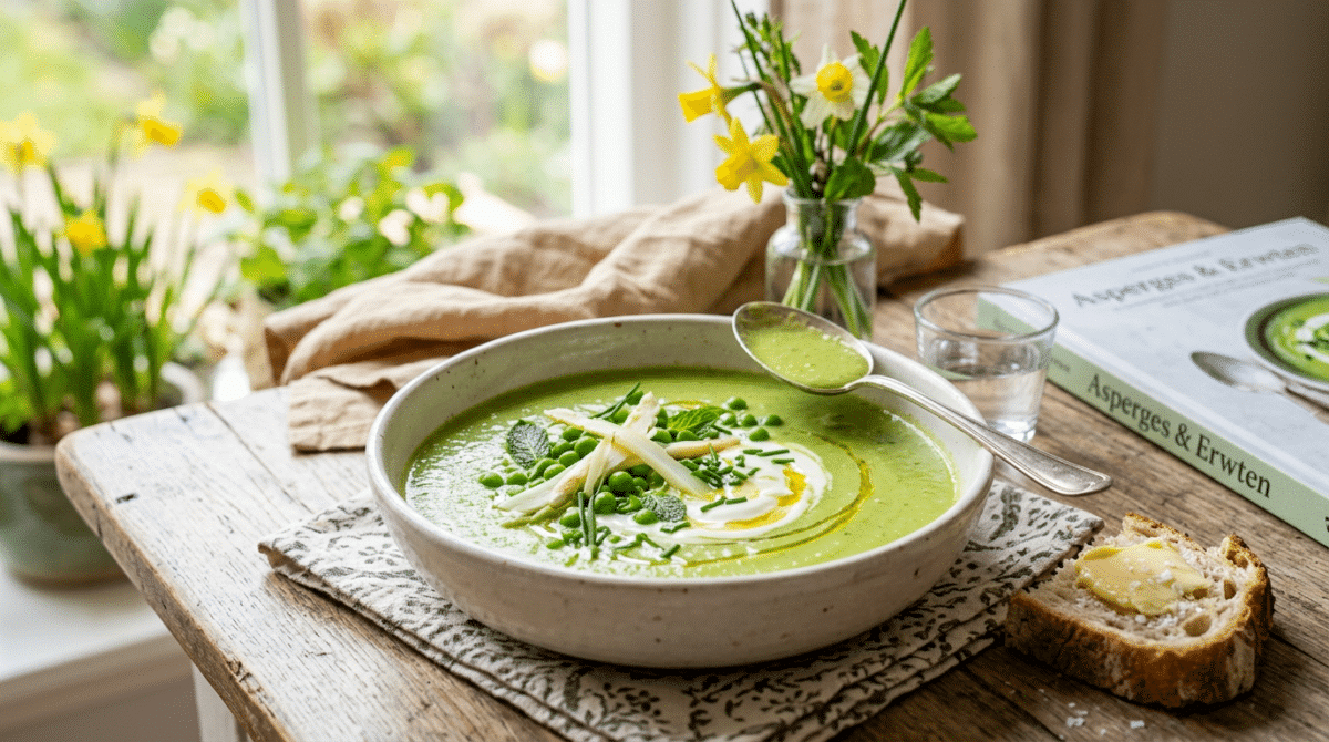 Zachte, verfrissende asperge-doperwtensoep in slechts 30 minuten klaar