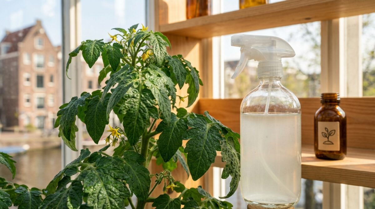 Bewaar de spray in een donkere fles en maak wekelijks een verse batch voor de beste werking. Zo bescherm je je tomatenplant veilig en effectief tegen plagen met dit badkamerproduct.